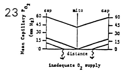 - mitochondria still function at PO2 = 0.5 mm Hg