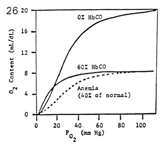 - thus 60% HbCO is much more serious than 40% anemia