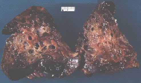 CCAM, type II, cut surface of lung showing multiple small cysts.
