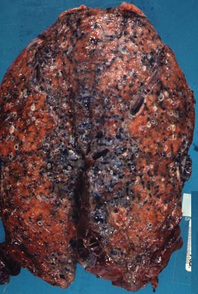 Idiopathic pulmonary fibrosis, cut surface of lung with fibrosis and antheacosis.Normal Lung (cut surface)
