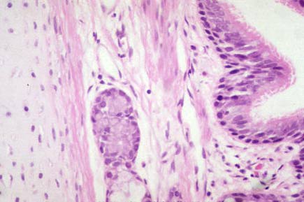 High power of fig. 6, with pseodostratified respiratory epithelium at top and cartilage at bottom.
