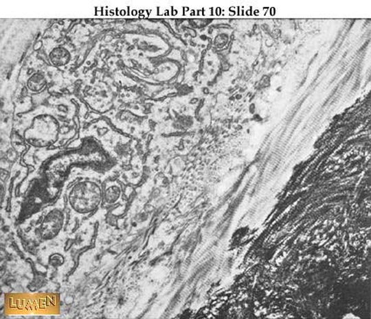 - EM of active osteoblast laying down the fibers and salts of bone.