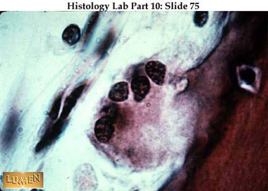- Detail of an osteoclast, a giant, multinucleated cell associated with bone