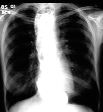 Esophagram of a patient with achalasia. Note the extent of dilated esophagus
