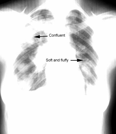 Alveolar and interstitial pattern can be evident in different portions of lung and is of diagnostic significance