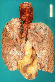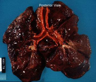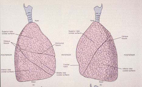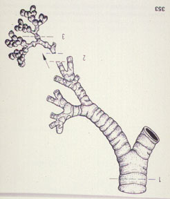 - Accompanying the branching airways is the double arterial supply to the lung, i.e., the pulmonary and bronchial arteries. Thus, infarctions rarely occur in the absence of significant cardiac failure