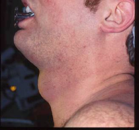 - Multinodular goiter: Multiple nodules may extend into the anterior mediastinum below the sternal notch.