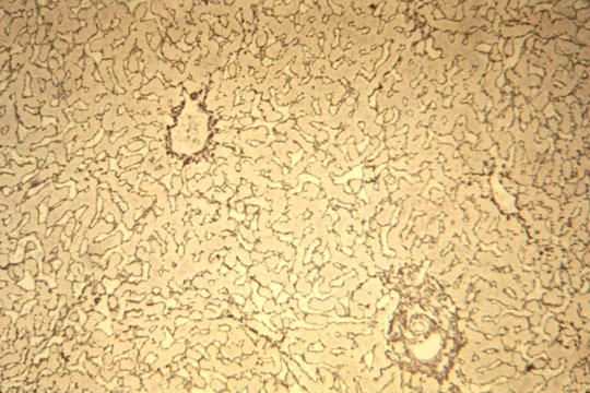 Fig 20 - RETICULUM:Stacks of collagen fibers in the Disse space.They stain black with silver impregnation.Is apparently produced by Ito cells.It forms the supporting framework of the hepatocytes.Its preservation in morbid conditions permits complete regeneration ad integrum while its destruction will produce scars,fibrosis and cirrhosis.