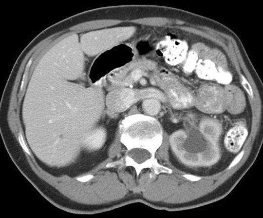 Note the relationship of the duodenal bulb. Click the image for labeling.