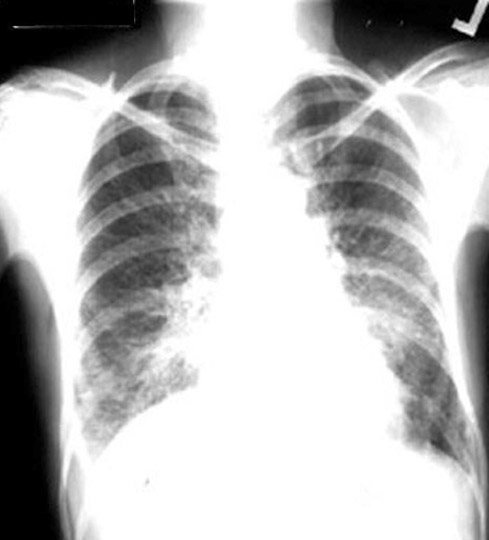 55 year old female presents with severe shortness of breath of two months duration. History of bilateral mastectomy for cancer breast 10 years back.